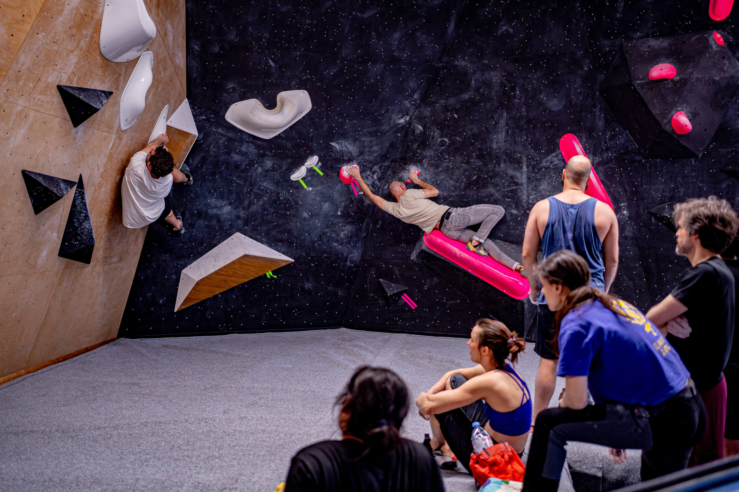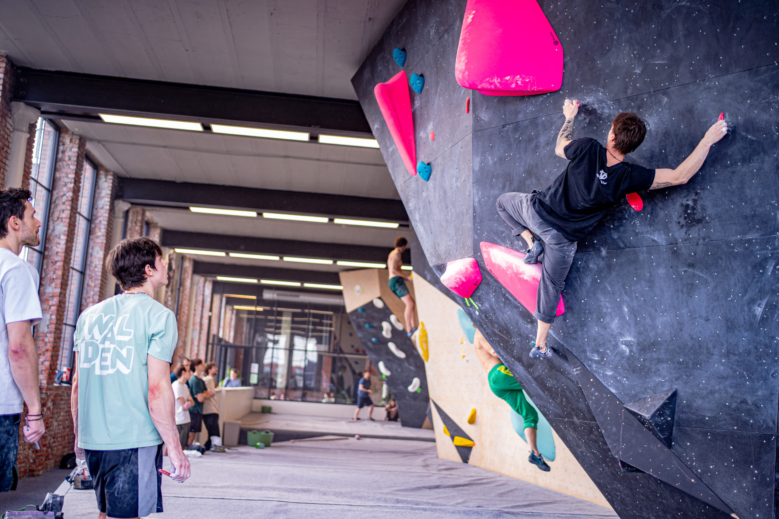 Jan en Nataleigh (Atari Climbing), aangevuld met UK guest setter Nathan Phillips — die speciaal hiervoor uit de U.K. naar Walden kwam — zorgden voor een sterke set met uitdagende en fun boulders. Nathan is tweevoudig British Champion, stond in de finale van het WK en is actief als National routesetter in de UK. Met meer dan 15 jaar ervaring in routebouw en een klimniveau tot 8c+ outdoor, bracht hij een sterke mix van ervaring en creativiteit mee.